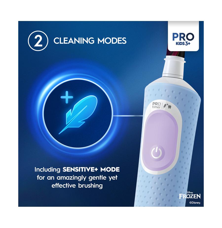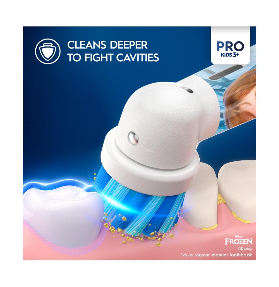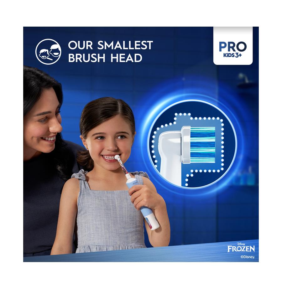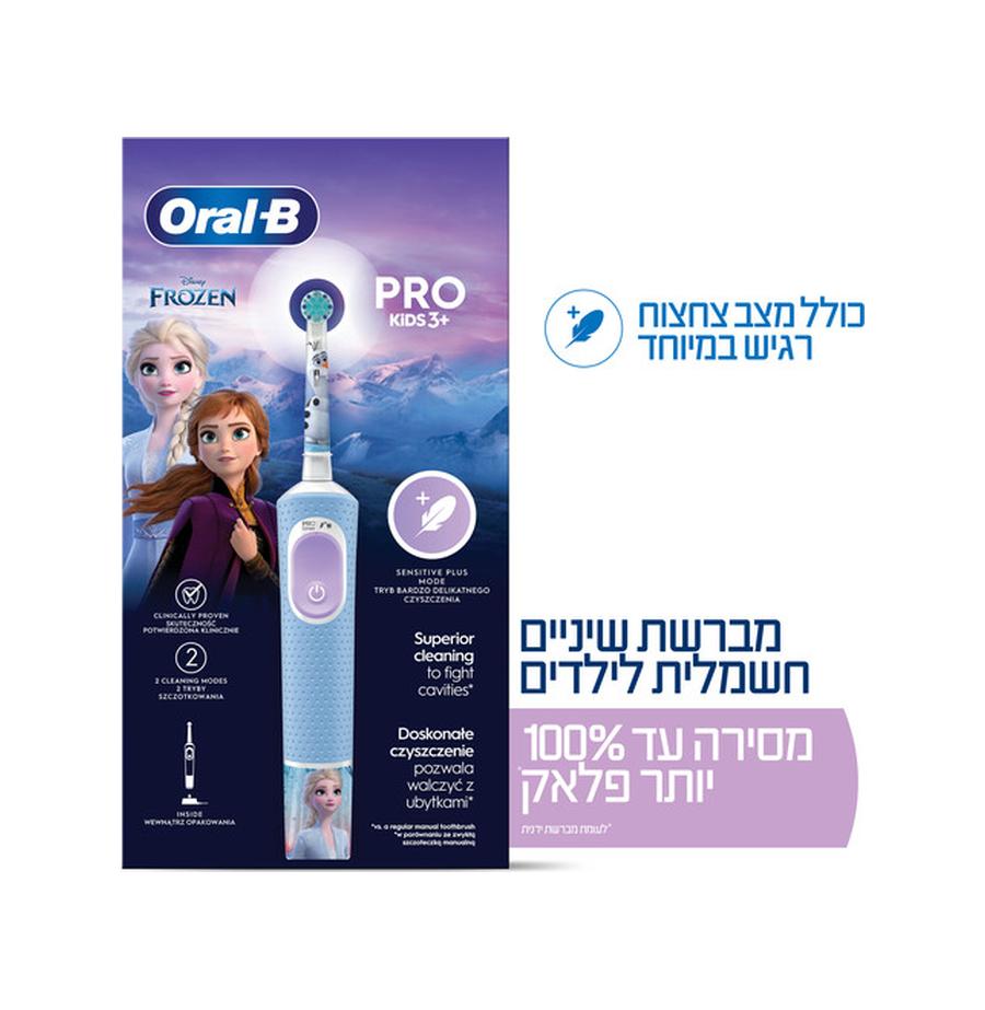 מברשת השיניים החשמלית פרו Oral-B Kids לבנים ובנות, כוללת ציורים של הדמויות המוכרות והאהובות מהסרט פרוזן של דיסני, ונותנת בידי ילדיכם הקטנות כוח עצום של ניקיון.